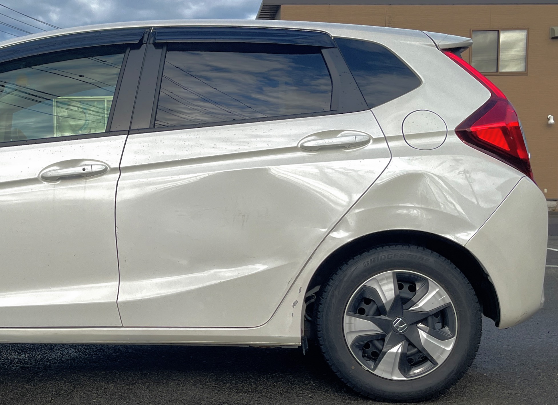 後ろのドアからバンパーまで、ズゴズゴなぁ。