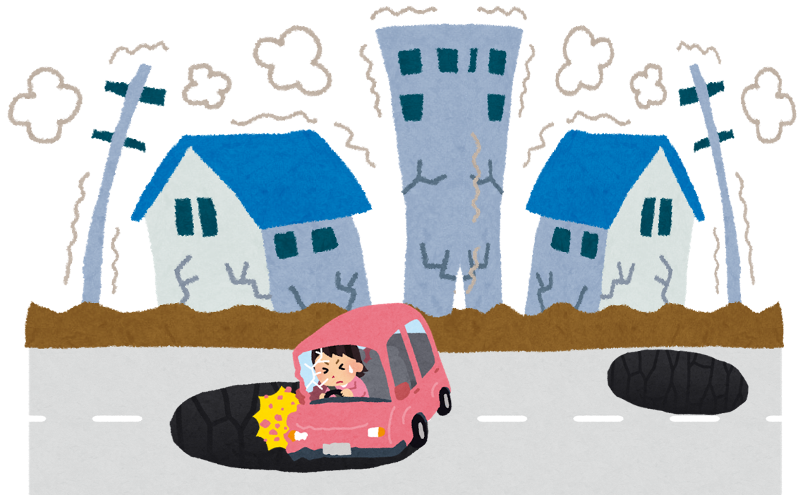 こんな場合、地震が原因の穴ボコなら補償を受けるコトはできないはずです。
